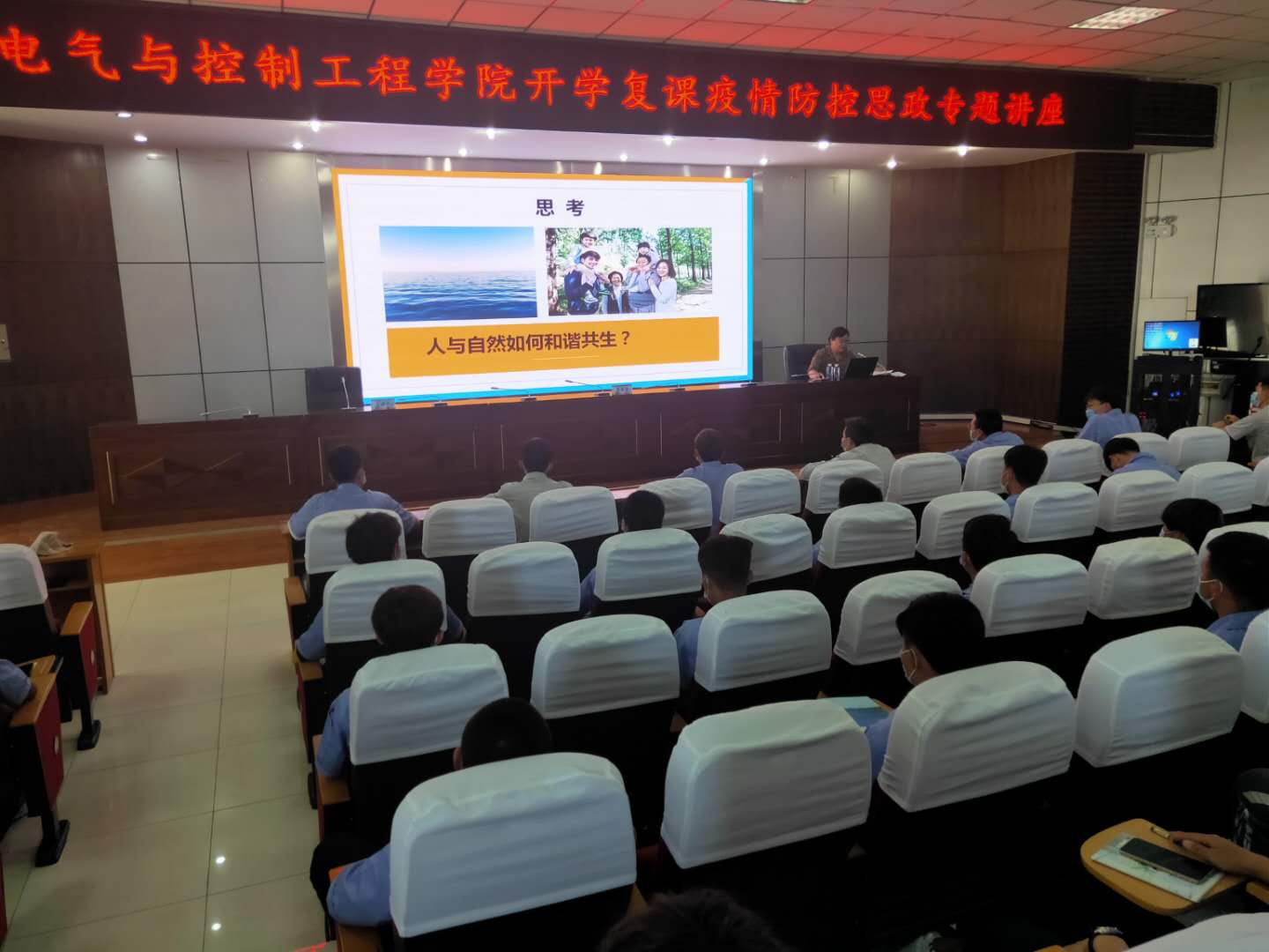 6月3日下午,原秦英副校长以“珍爱生命,保护生态”为主题为电控学院师生讲授了一堂疫情防控专题思政课。电气与控制工程学院相关领导及2019级部分学生参加了此次讲座。